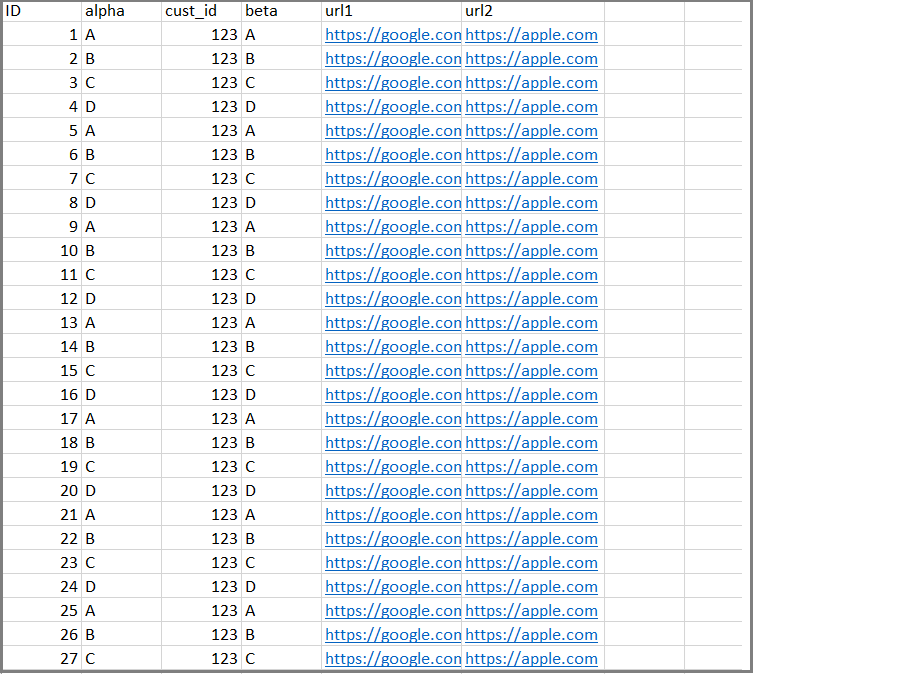The below sample dataset that can be used for creating Variable URL fields