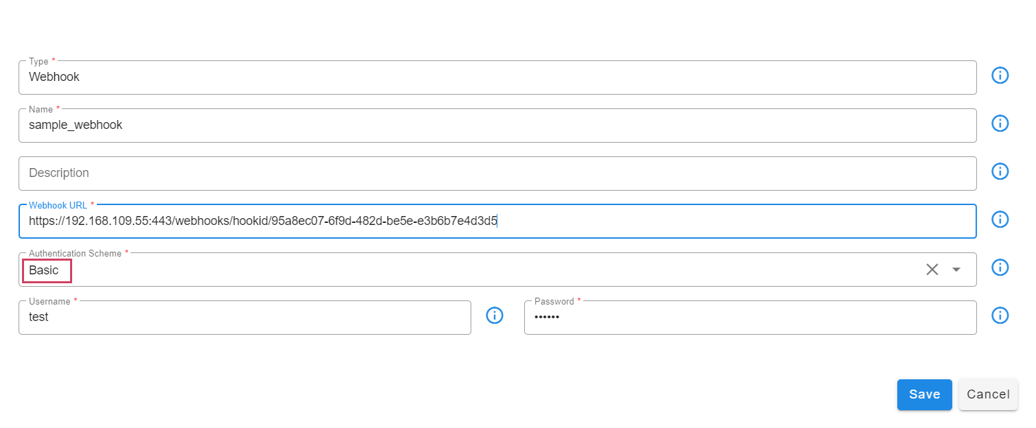 The Webhook-based Notification Channel supports the following authentication modes: