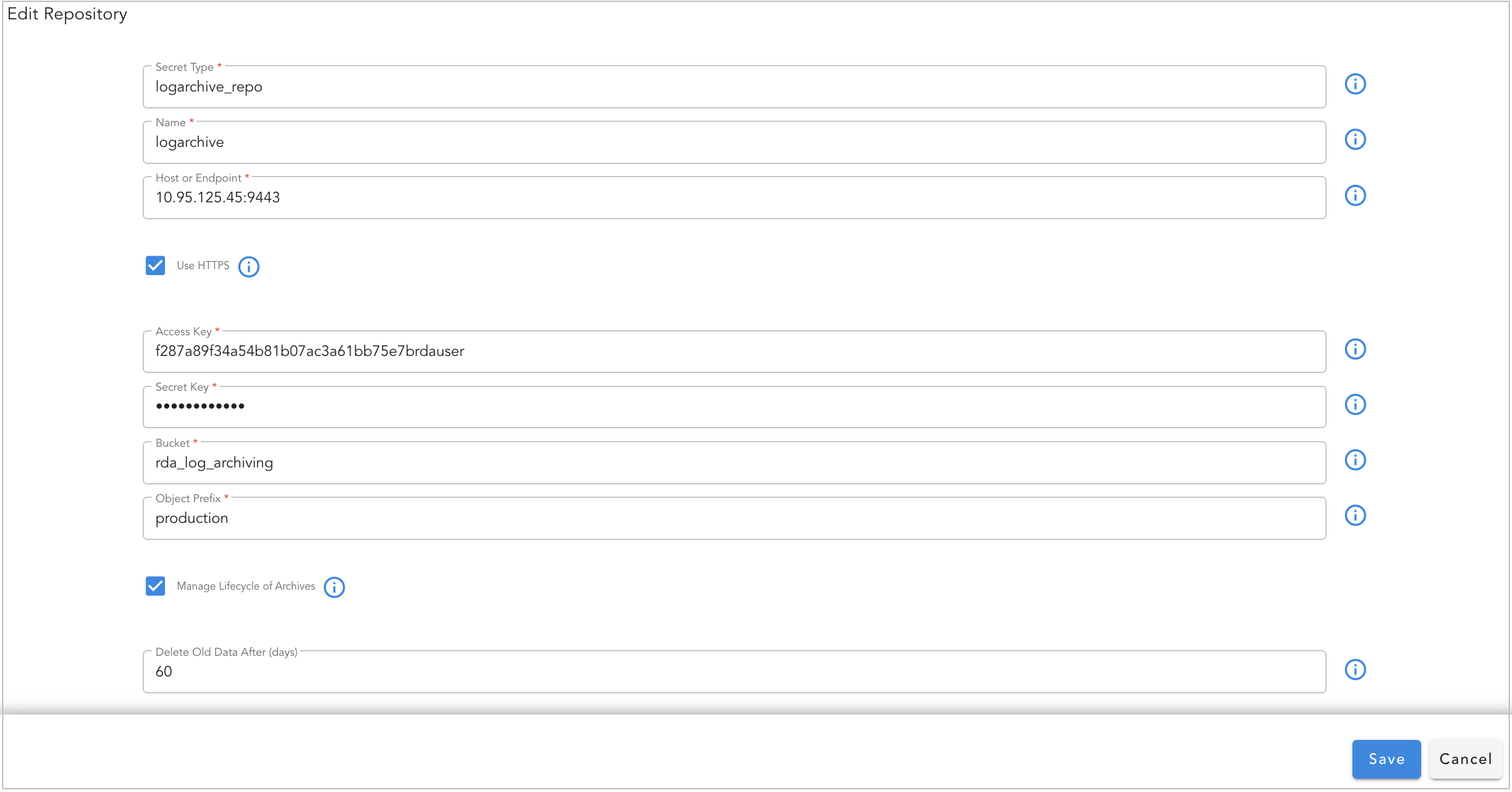 1. Login into UI portal and go to Main Menu --> Configuration --> RDA Integrations --> Log Archives --> Click on Log Archive Repository --> Select one of the Log Archive name and click on Replay